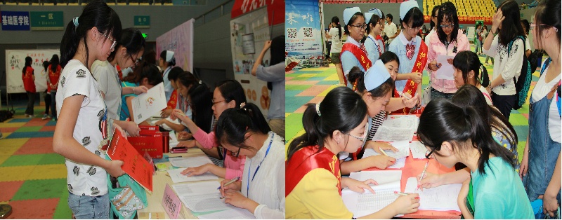 再次,为帮助家长更加直观的了解护理专业,公司在家长等候区精心设计了一系列护理职业礼仪展示与中医护理体验活动:在职业礼仪展示中,公司礼仪社的同学们向家长们演示了护理人员站姿、走姿、持病历夹、端治疗盘、穿脱手术衣等规范动作;在中医护理体验活动中,家长们通过品尝养生药茶、尝试中医耳穴埋籽及了解中医九种体质辨识等,更加全面、深入的了解了博大精深的中医养生文化,增加了对孩子所学专业的认可与支持;在新生与家长合影留念区,公司提供了护士服供新生与家长合影留念。