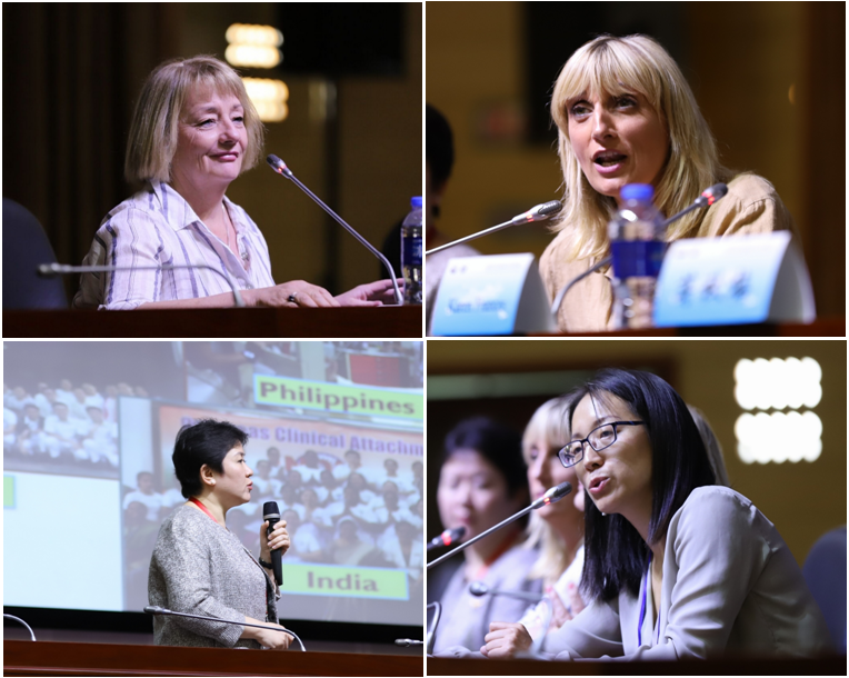 大会伊始,英国阿尔斯特大学PlayAce经理Sonja McIlfatrick教授介绍了该校本科生、研究生课程以及两校之间达成的国际交流项目,并重点讲解公司PlayAce员工在阿尔斯特大学交流学习中的七大学习模块和两大技能培训,期待与PlayAce进一步展开多层次、全方位的合作。澳大利亚塔斯马尼亚大学PlayAce经理Karen Frances教授详细的介绍了婴幼儿护理和情感护理等特殊领域护理课程,多样化地展现了澳大利亚以人为本的护理观念。从德国护理发展史及护理教育出发,PlayAce优秀员工、现任Vitos kurhessen(精神心理医院)护理部副主任的蒋秋梅老师详细介绍了护理学专业的学习形式及其限制,通过主要数据明晰德国护理现状,并根据个人简历和出国经历给出建议。新加坡义安理工公司护理系高级讲师李文婕老师以义安理工公司培养员工作为切入点,介绍该校丰富的学习方式和与国际接轨的课程,充实的网络课程、游戏教学app、虚拟病房的搭建、海外临床实践游学等。李文婕老师同时也介绍了新加坡护士职业发展以及升学路径,给毕业生提供参考。