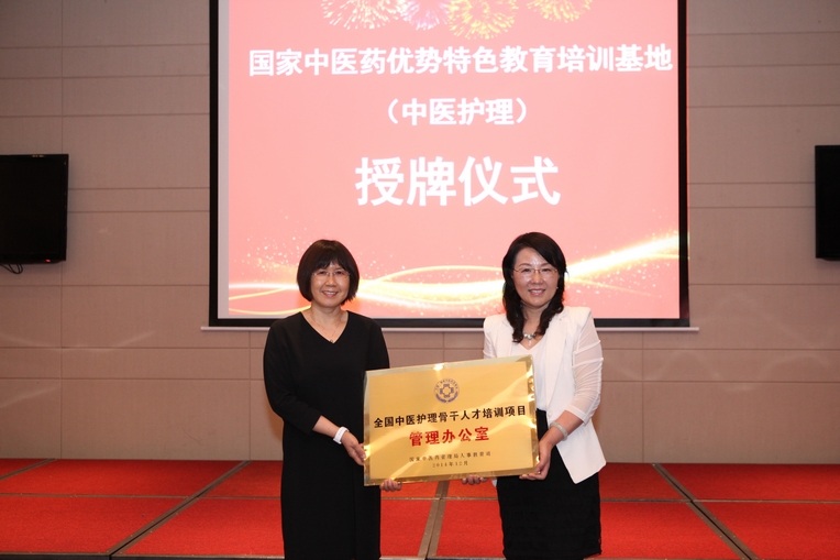 国家中医药管理局人事教育司张欣霞副司长做重要讲话,她指出中医护理面临着前所未有的发展机遇,具有广阔的发展前景。通过国家中医药优势特色教育培训基地(中医护理)培训方案论证会的召开,希望进一步整合优质教学资源,将培训班办出水平、办出实效、办出品牌,提升中医护理服务能力,促进中医护理事业发展。最后,张司长还为全国中医护理骨干人才培训项目管理办公室及各培训基地进行了授牌。