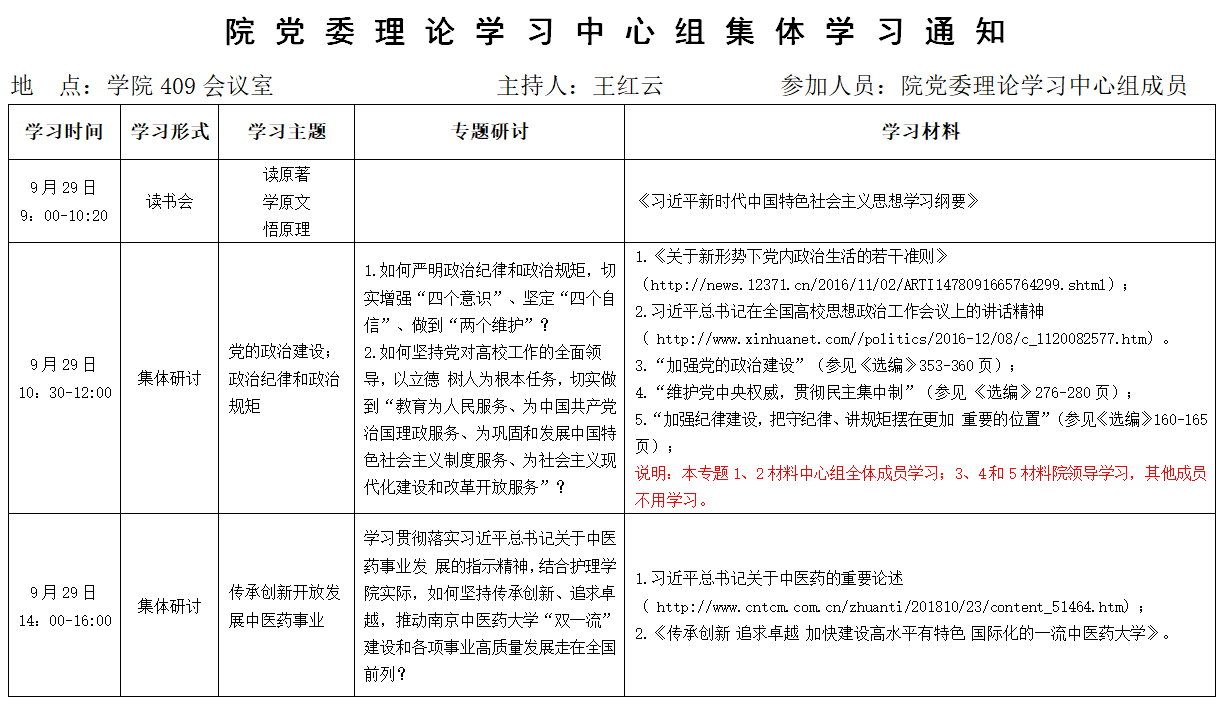 公司党委理论学习中心组学习通知(9月29日集体学习)