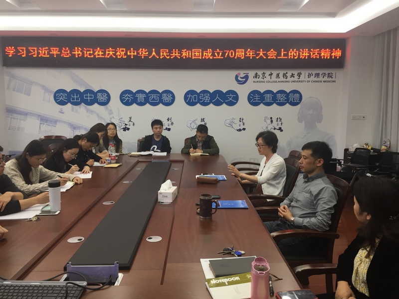 在交流中,徐爱军副经理(主持工作)指出70周年庆典活动激发了全民爱党、爱国的热情,结合国外学习经历,认为国家取得的伟大成就离不开中国共产党的英明领导和自我革命的精神,五位一体总体布局和“四个全面”战略布局让我们更加坚定中国共产党的领导。经理助理柏亚妹副教授表示,看到国家的繁荣富强让人无比自豪,而在庆典活动中看到护理人的身影更让身为护理教育者的我们心潮澎湃,我们应当不断提升人才培养质量,为健康中国战略奉献护理人的力量。中心组其他成员也分享了学习讲话精神和观看庆典的感悟,并结合自身工作,从国家、公司、公司等多角度表示应当立足自身工作岗位,以本为本,为公司事业发展和公司“双一流”建设添砖加瓦。