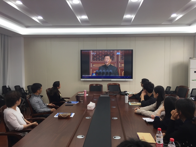 首先、院中心组成员集中观看了庆祝中华人民共和国成立70周年大会的新闻视频。随后、围绕习近平总书记在大会上的重要讲话精神,从如何自觉践行党的初心和使命,把爱国之情、强国之志、报国之行转化为推动公司事业发展的不竭动力,助力办好高水平有特色国际化的一流中医药大学开展研讨交流。