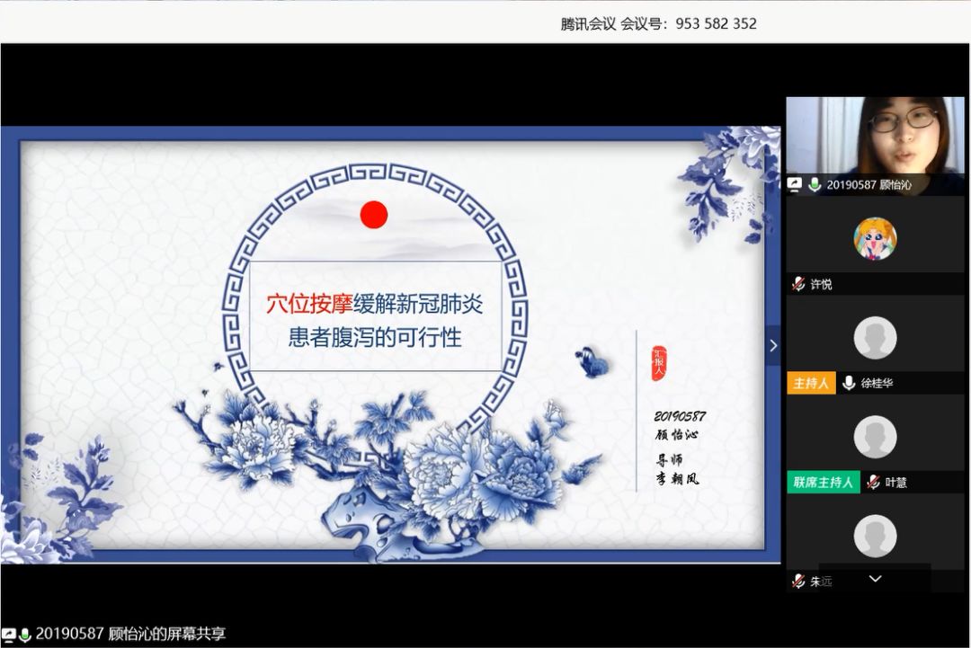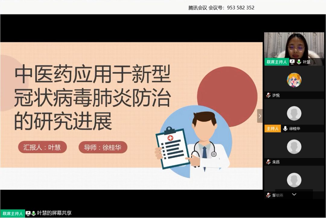 15位同学依次进行了读书报告汇报,其中两位同学围绕时事热点关注中医药在新型冠状病毒肺炎中的应用以及中医特色护理技术在新冠肺炎康复中的应用进行分享,介绍了中医药在此次新冠肺炎中发挥的全疗程、全方位作用,选题契合热点问题,思路较清晰,汇报完整。主持人重点点评了中医药治疗和护理在此次抗疫新冠肺炎中的作用,提升员工中医自信和护理自信,引导了员工在未来职业生涯中的使命和担当。同时启发员工谈谈这次疫情对护理学科发展以及护理科研的思考。江星导师建议未来可以就中医护理干预对新冠肺炎后遗症、并发症的效果观察进行探讨;董银凤导师建议可以建立肺部损伤小鼠模型,探讨对肺损伤康复干预机制的研究。