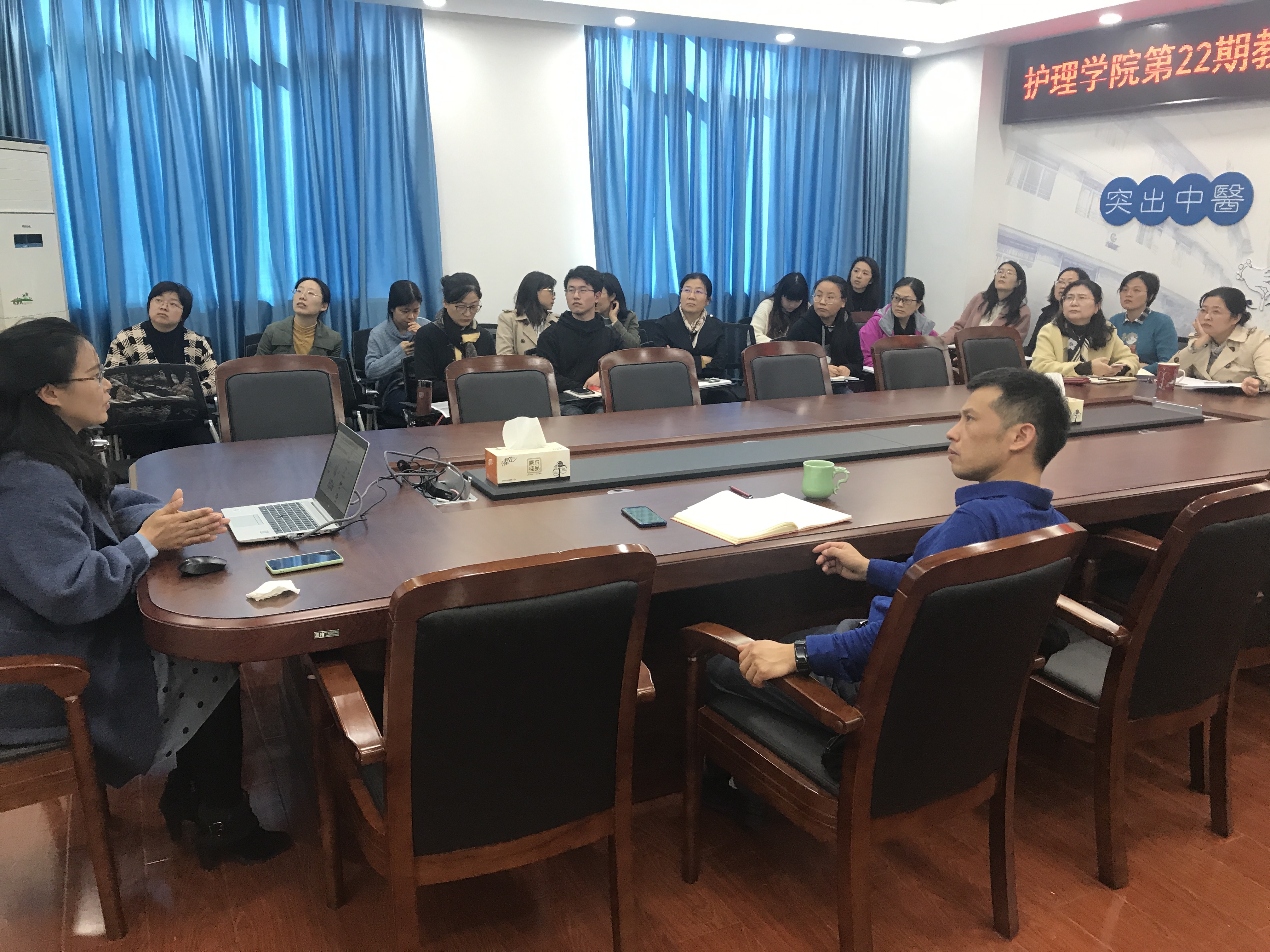 贾玲玲博士围绕“肠道稳态在胰腺稳态中的作用”进行了专题讲座,并分享了自己相关科研成果,讲座过程中适时与公司教师进行互动和交流,气氛热烈;徐爱军经理则从2020年公司国自然申报、立项情况,全国护理学科国自然立项情况,近年来公司国自然中标情况这三个方面分析了当前校内外国自然立项的形势和趋势,提出了公司2021年国自然申报工作的设想。