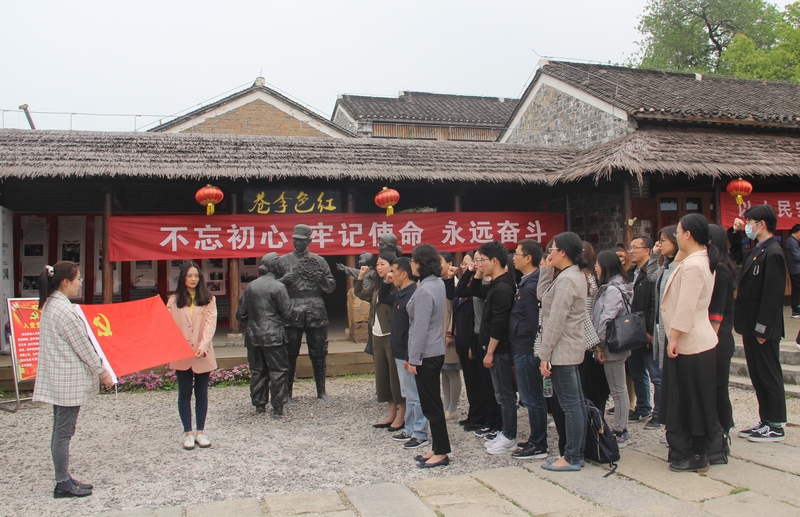 下午,师生党员来到有着苏南“小延安”之称“红色李巷”参观学习。在讲解员的引导下,大家参观了陈毅等6位新四军领导人旧居、抗日战争收藏馆、溧水人民抗日战争纪念馆、新四军第六师第十六旅旅部等红色遗迹,了解了当年新四军在溧水的战斗历史及革命先烈们的光荣事迹。一件件珍贵展品、一幅幅历史图片、一桩桩感人故事,仿佛革命场景再现,让大家沉浸到当时的硝烟战火以及新四军与日寇浴血奋战、艰苦卓绝的峥嵘岁月中,无不为当年的共产党人和革命志士们的英勇壮举所震撼。在新四军雕塑前,举行了重温入党誓词仪式,全体党员同志面对鲜红的党旗,高举右拳,郑重宣誓,再次回顾入党初心,坚定奋斗使命。