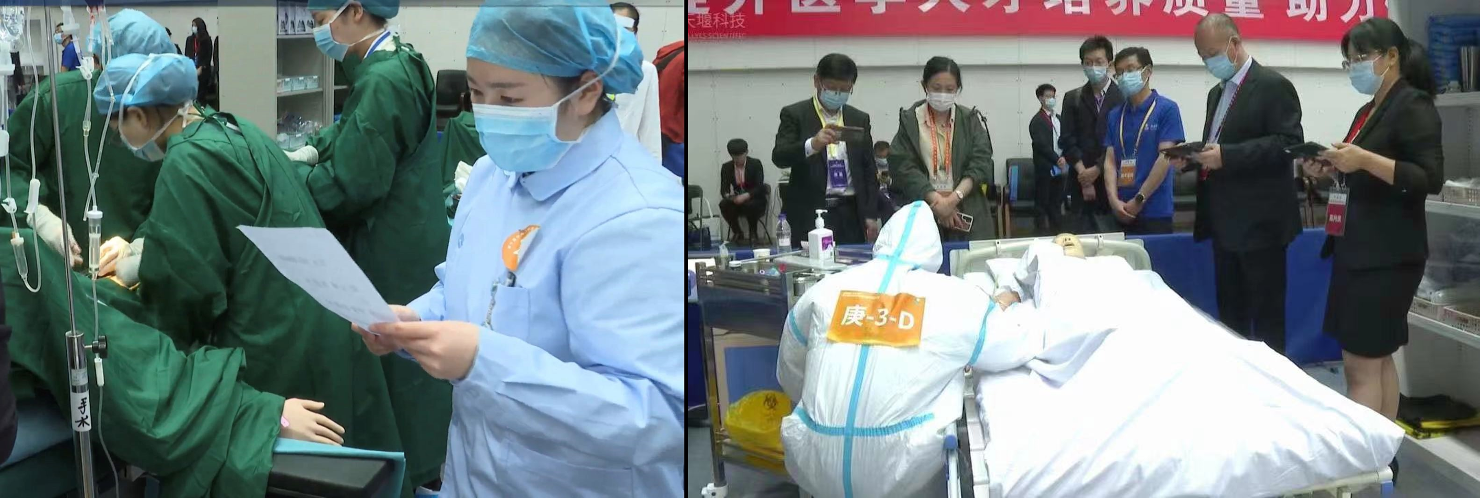 冠军争夺赛环节,由临床医学、中医学、护理学、预防医学四个专业联合组队,体现了医德医术并重、中医西医并举、医疗护理协同、临床公卫融通、医工文理结合,重现发热门诊、方舱医院、重症监护室、手术室几个场景医务人员支援武汉抗疫的救治场景,重点考察员工临床思维、技术技能、职业素养和团队合作精神。