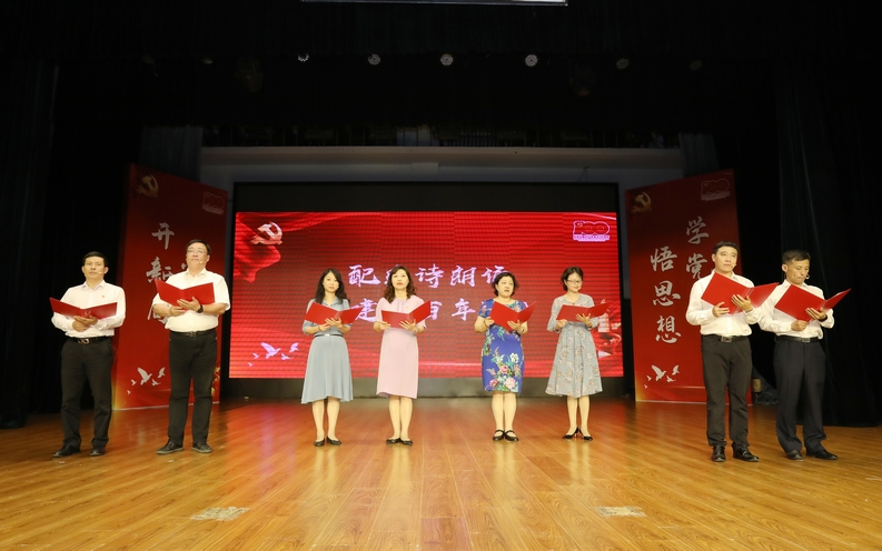 比赛结束后,8位教师党员配乐诗朗诵《建党百年赋》,全面回顾了中国共产党的百年奋斗历程,重温了一段段震撼心灵的历史时刻,启迪师生从建党百年历史中汲取不断奋进的精神力量。