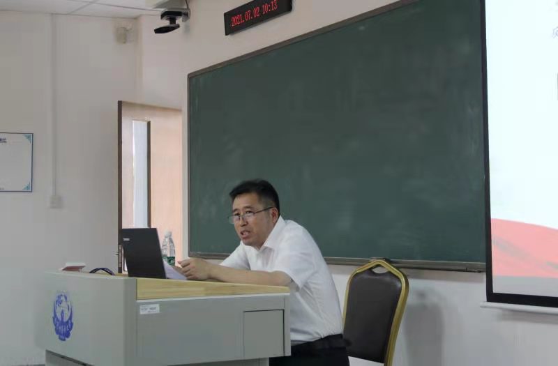 从“百年党史,风云激荡,肩负大国担当;廉洁奉公,勤政为民,从严管党治党;拒腐防变,警钟长鸣,强化纪法意识;明理增信,崇德立行,严守纪律底线”等四个方面,张玉清书记深入浅出的讲授了专题党课。同时,结合工作实际和典型案例,张玉清书记要求大家,一是加强学习,做心中有纪律的表率;二是慎思笃行,做言行守纪律的表率;三是严格自律,做用权讲纪律的表率。张玉清书记以带领现场党员师生重温入党誓词形式结束党课。