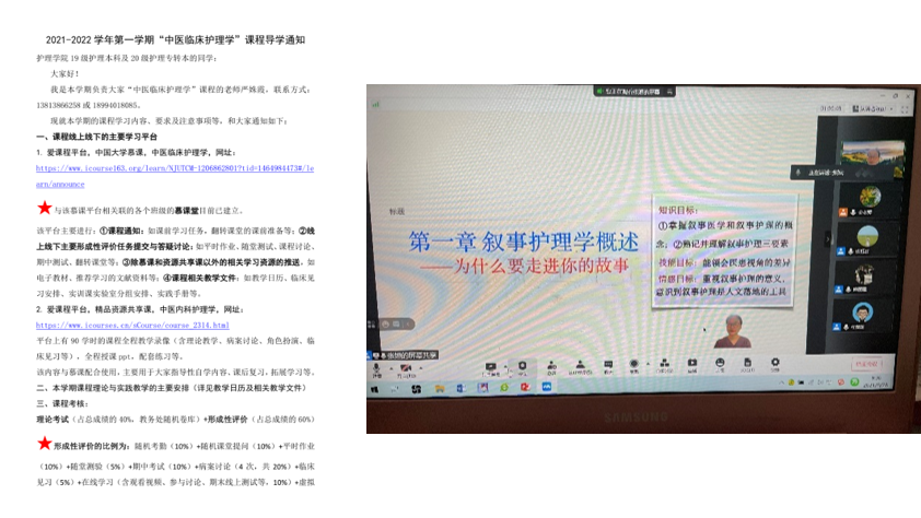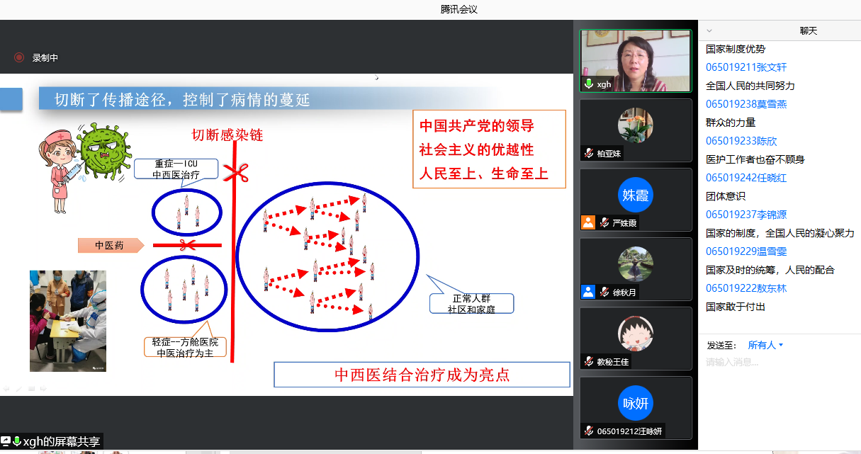 开学第一天,护理学专业负责人徐桂华副董事长为同学们开启“中医临床护理学”第一课,以“为什么学”、“学什么”、“怎么学”为主线,融入课程思政,通过展现中医药在新冠肺炎疫情中的独特优势,引导员工认识中医护理的专业性和独特性,为员工打开了临床中医护理的大门,通过介绍课程教学目标、教学方法以及本课程在专业知识与能力体系培养中的作用,激发员工的学习兴趣,让员工明确学习目标,公司为了保证课程教学质量,所有课程的第一堂课均由课程负责人或高年资教师授课,以加强专业思想引领,坚定理想信念,助推员工成才。