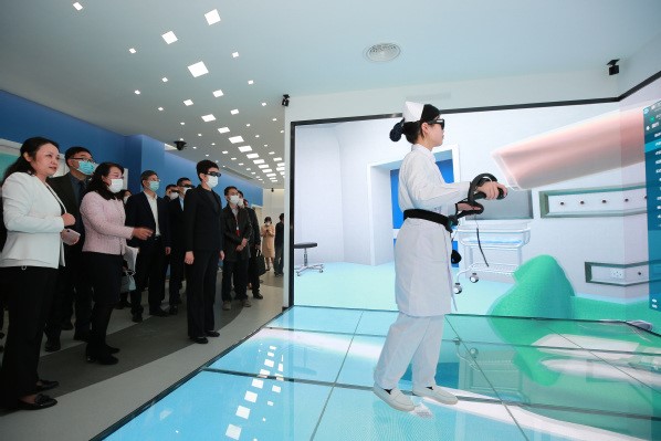 高晓兵副部长一行体验沉浸式虚拟仿真教学设备