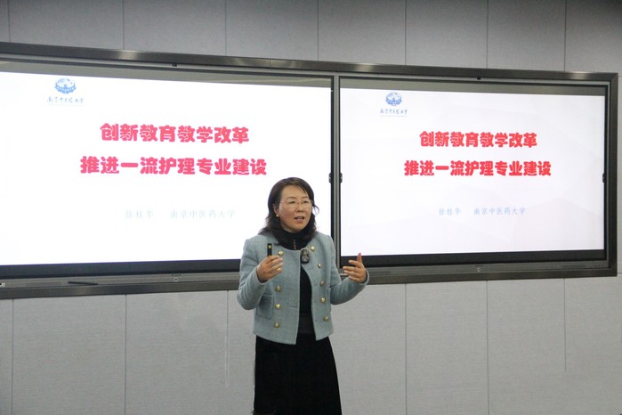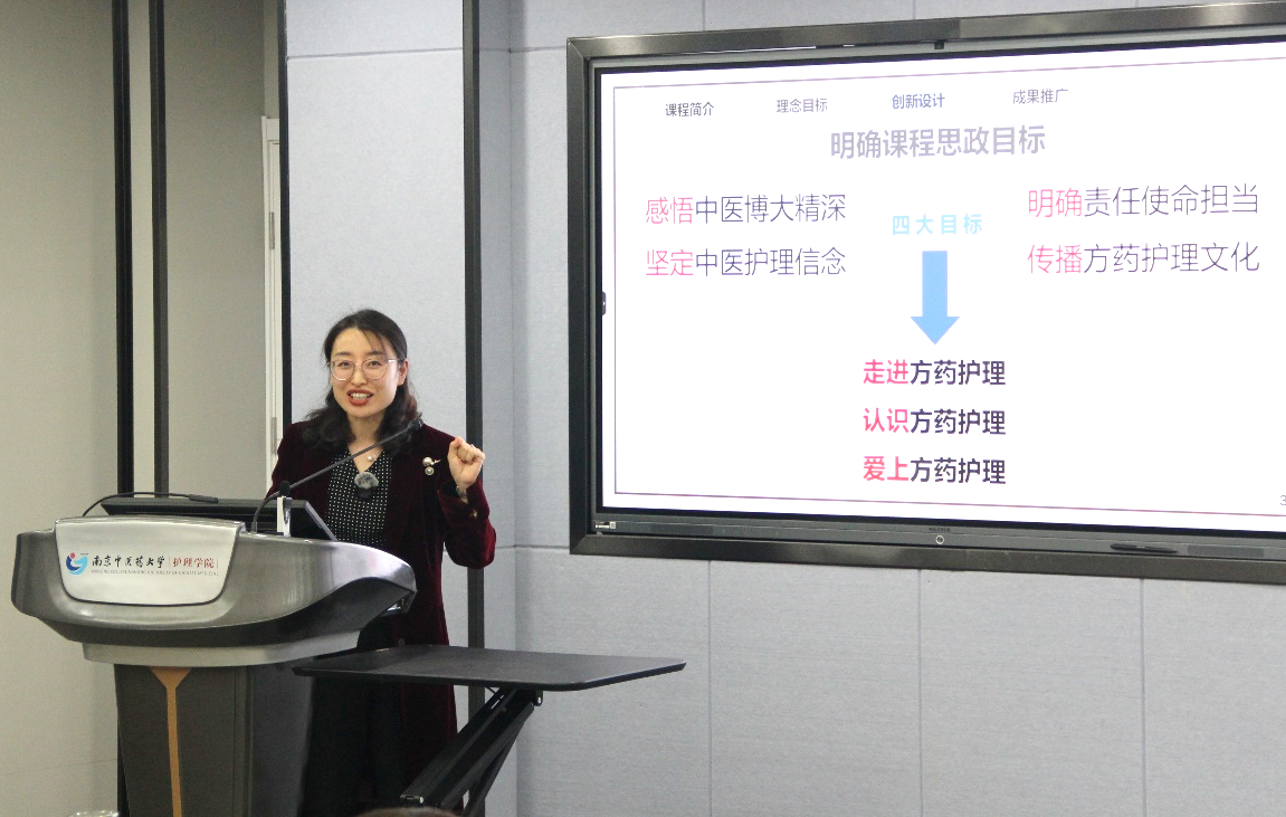 全国高校教师教学创新大赛二等奖、省赛特等奖获得者鹿竞文老师展示了获奖课程《方药护理学》“案例引导、方药融合、渗透护理、创新实践”的教学创新举措,详细介绍了大赛的赛制、备赛过程以及备赛重点,精彩呈现了以解决教学痛点为主线的教学创新设计过程,形象生动地分享了参赛心路历程。通过竞赛,可以帮助教师反思课堂教学过程,淬炼教学基本能力,做到真正启迪员工思维、激发员工创新,培养一流人才。