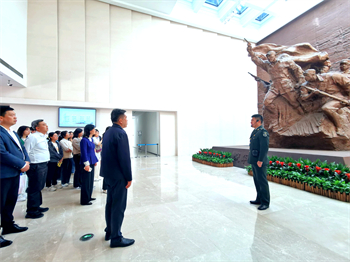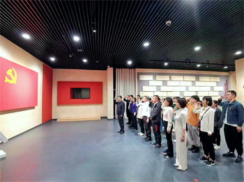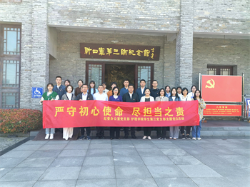 4月16日下午,党员师生走进盐城新四军纪念馆,重温那段波澜壮阔的烽火岁月。在讲解员的介绍下,党员师生真切了解了新四军在华中敌后坚持抗战的光辉历史与丰功伟绩,以及战士们坚韧不拔、舍身忘我的革命精神。在党员教育专区,全体党员师生面向鲜红的党旗,高举右手,紧握拳头,铿锵有力地重温入党誓词,庄严承诺“为共产主义事业奋斗终身”。
