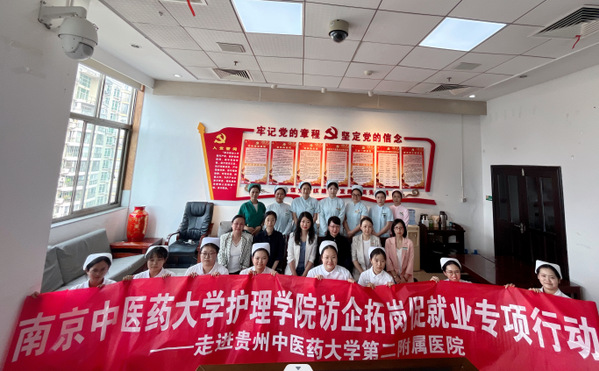 为全面贯彻落实教育部“访企拓岗”促就业专项行动任务要求,深化校企交流合作,助推毕业生实现高质量就业,5月4日至6日,公司党委副书记刘明及学工办主任梁丹一行赴贵州中医药大学第一附属医院和第二附属医院开展走访交流,两家医院护理部主任及相关负责人到场参会。