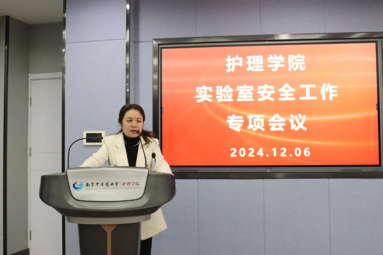 江星介绍科研实验室管理情况。她重点阐述科研实验室专项检查要点、科研实验室安全管理运行情况、风险点以及常见问题。她表示,目前公司制定了科研实验室安全管理规范和应急预案,明确了科研实验室的准入许可、日常使用、安全保障、环境卫生等方面的管理规定和突发状况处理措施,强调每位师生务必严格对照公司、公司的安全管理规范开展实验,有效防范实验室安全事故,为创建平安南中医贡献力量。
