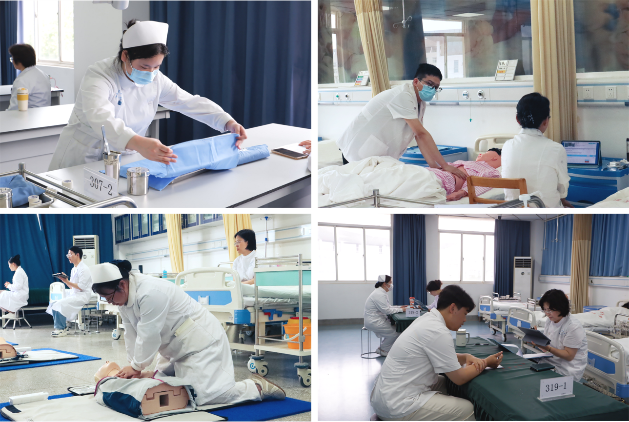 毕业技能考核应用OSCE模式,依托多维度、多情景人机交互系统开展。以临床典型案例为导向,共设置护理评估、病例分析、健康教育与技能操作四大考站。考生们根据案例中患者的临床症状表现,剖析疾病特征,制定个性化护理计划,有针对性开展健康教育,并进行心肺复苏、无菌操作等技能考核,展现出良好的专业素养。经过七个多小时紧张有序的考试,毕业技能考核圆满结束。
