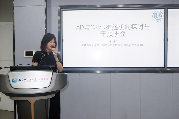 本期沙龙特邀合肥工业大学、美国宾夕法尼亚州州立大学计算机科学与工程博士安宁教授,安徽医科大学第一附属医院神经内科朱小群教授和合肥工业大学杨矫云副教授作专题报告。专家们聚焦护理学科发展前沿,围绕“融合AIOT的认知障碍筛查与叙事干预”、“AD与CSVD神经机制探讨及干预研究”等议题进行分享,通过技术赋能实现早期风险预警、病程动态监测及人文关怀的有机融合。在交流互动环节,与会师生围绕医工交叉干预阿尔兹海默病等话题展开热烈讨论,取得良好效果。