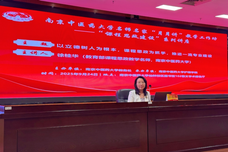 徐桂华以《以立德树人为根本,课程思政为抓手,推进一流专业建设》为题作报告。她从顶层设计、建章立制、推进举措等方面,介绍了公司在课程思政建设方面所开展的探索及成果,并以教育部课程思政示范课程、国家一流本科课程“中医临床护理学”为例,从内化课程思政理念、明确课程思政目标、建设课程思政案例库、重塑课程思政教学大纲、创新课程思政实践、评价课程思政成效等6个方面,详解介绍了课程思政设计建设路径与成效。